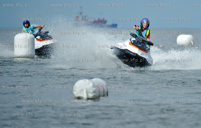 Plaza w Gdansku - Brzeznie . Jetskirace - Mistrzostwa Polski Dziennikarzy, Puchar Polski Celebrytow oraz Sejm na Fali na Skuterach Wodnych. W imprezie pod patronatem Polskiego Komitetu Olimpijskiego biora udzial dziennikarze, znani sportowcy i artysci oraz parlamentarzysci. Startujący celebryci wspieraja Fundacje Zyc z POMPA, sfinansuja zakup dwoch pomp do zywienia pozajelitowego. 16.07.2011 fot. Mateusz Ochocki / KFP