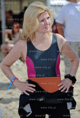 Plaza w Gdansku - Brzeznie . Jetskirace - Mistrzostwa Polski Dziennikarzy, Puchar Polski Celebrytow oraz Sejm na Fali na Skuterach Wodnych. W imprezie pod patronatem Polskiego Komitetu Olimpijskiego biora udzial dziennikarze, znani sportowcy i artysci oraz parlamentarzysci. Startujący celebryci wspieraja Fundacje Zyc z POMPA, sfinansuja zakup dwoch pomp do zywienia pozajelitowego. Nz Iwona Arent 16.07.2011 fot. Mateusz Ochocki / KFP