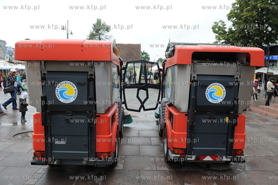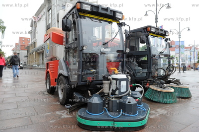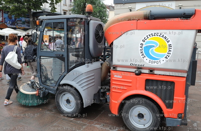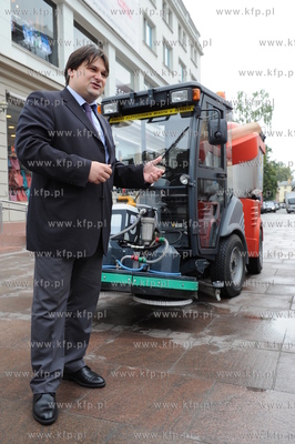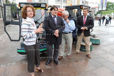 Sopot, Plac Przyjaciol Sopotu.Prezentacja wieloczynnosciowych zamiatarek kompaktowych. W prezentacji wzieli udzial wiceprezydent Sopotu Bartosz Piotrusiewicz, dyrektor Zakladu Oczyszczania Miasta Janusz Kupcewicz-Szwoch i radny Wieczeslaw Augustyniak. 07.07.2011 fot. Jerzy Bartkowski / KFP