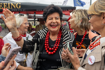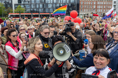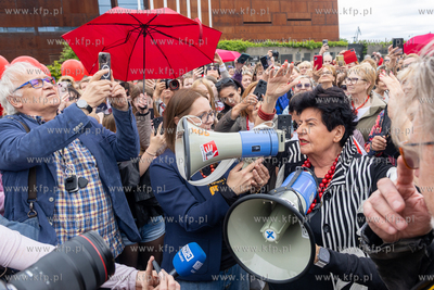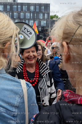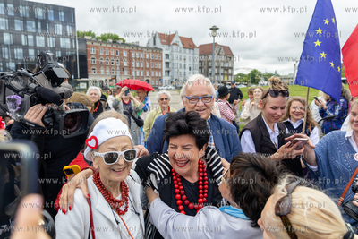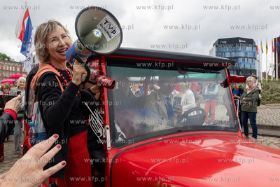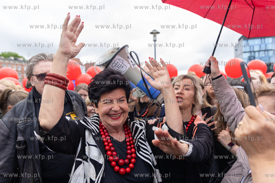 Gdańsk, pl. Solidarności. Lańcuch mocy i czerwone korale z Joanna Senyszyn. 30.05.2025 / fot. Anna Rezulak / KFP