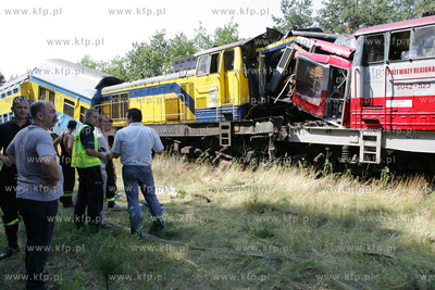 W okolicy stacji PKP w Korzybiu (woj.pomorskie powiat slupski) zderzyly sie czolowo dwa pociagi osobowe. 25 osob jest rannych w tym 6 ciezko. Trasa kolejowa jest zablokowana.