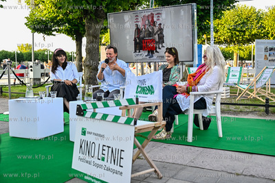 Festiwal BNP Paribas Kino Letnie Sopot-Zakopane osiągnął półmetek. Puentą lipcowych projekcji było spotkanie z gwiazdami filmu „Kos” w reżyserii Pawła Maślony, jednego z najgłośniejszych polskich tytułów ubiegłego roku. W festiwalowej kawiarni Koło Molo w Sopocie pojawili się aktorzy Matylga Giegżno i Robert Więckiewicz oraz projektantka kostiumów Dorota Roqueplo. Rozmowę z festiwalowymi gośćmi poprowadziła dziennikarka radiowa i telewizyjna Weronika Wawrzkowicz. Po spotkaniu gwiazdy filmu przeniosły się na molo, by wspólnie z publicznością jeszcze raz obejrzeć nagrodzonego Złotymi Lwami „Kosa”. 31.07.2024 / fot. Jerzy Bartkowski / KFP