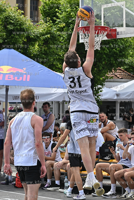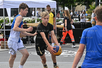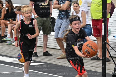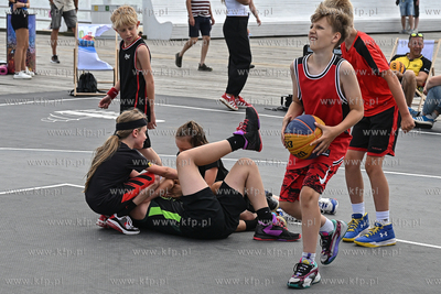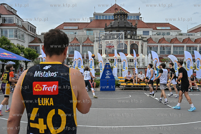 Sopot. Plac Zdrojowy i Molo. Trefl Sopot. Turniej koszykówki 3x3 w dniach 5 i 6 lipca na Placu Zdrojowym oraz Molo w Sopocie. Turniej odbywa się w kategorie wiekowych: U11- rocznik 2014 i młodsi, U13 - rocznik 2012 i młodsi, U15 - rocznik 2010 i młodsi, U18 - rocznik 2007 i młodsi. Podczas turnieju firma Volvo zaprezentowała systemy bazpieczeństwa stosowane w samochodach. 05.07.2025 fot. Jerzy Bartkowski / KFP