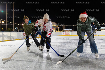 Mariusz Czerkawski na otwarciu lodowiska w Sopocie. Nz. Magdalena Czarzyńska Jachim - prezydentak Sopotu. 06.12.2024 / fot. Anna Rezulak / KFP