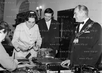 Slub Lucyny Legut z Markiem Wereckim w Ratuszu Staromiejskim w Gdansku. Wsrod zaproszonych gosci aktor Teatru Wybrzeze Ryszard Ronczewski. 03.10.1970 0007734z Fot. Zbigniew Kosycarz / KFP ZAKAZ PUBLIKACJI ZDJECIA W INTERNECIE