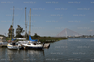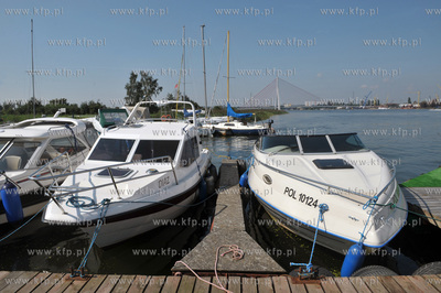 Gdanski Osrodek Szkolen Motorowodnych i przystan jachtowa marina Stewa w Gdansku Rudnikach nad Martwa Wisla jest polozona na wodnym szlaku Petli Zulawskiej. W oddalei most wantowy Jana Pawla II. 26.08.2011 Fot. Maciej Kosycarz / KFP