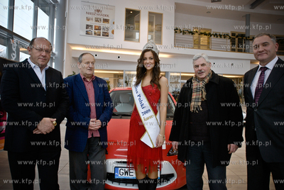 Big Autohandel Salon w Gdanku - miss polski 2009 Anna Jamroz otrzymuje samochod Forda K w limitowanej edycji jako nagrode za zwyciestwo w konkursie Miss Polski. Nz od lewej Gerard Parzutka z firmy Missland , Henryk Czoska 2 od lewej Henryk Czoska - IMPRESARIO, Anna Jamroz z ojcem i prezes Big Autohandel Jerzy Jankowski .