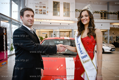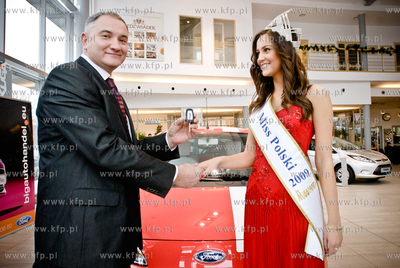 Big Autohandel Salon w Gdanku - miss polski 2009 Anna Jamroz otrzymuje samochod Forda K w limitowanej edycji jako nagrode za zwyciestwo w konkursie Miss Polski. Nz po lewej Tomasz Susko - dyrektor ds. Sprzedazy i Marketingu.