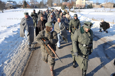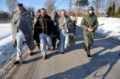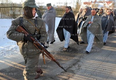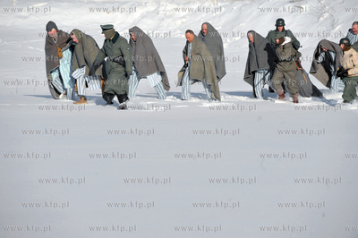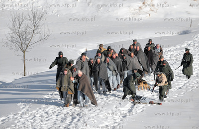 W Niestepowie na Kaszubach realizowano zdjecia do filmu dokumentalnego KL Sttuthof Fabryka Smierci. Krecone sceny zwiazane sa z tzw marszem smierci czyli zimowa ewakuacja wiezniow z obozu koncentracyjnego na zachod pod koniec II wojny swiatowej. Trasa marszu wiodla m.in przez Niestepowo i gmine Zukowo. Rezyserem filmu jest Wieslaw Kwapisz. 23.01.2010 Fot. Maciej Kosycarz / KFP