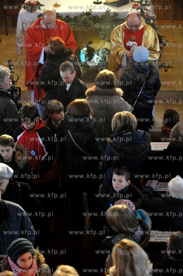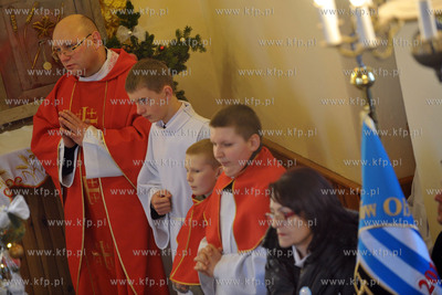 Uroczystosci nadania szkole podstawowej w Niestepowie imienia Wiezniow Obozu Stutthof. Msza sw. kosciele pw. Najswietszego Serca Pana Jezusa. 27.01.2012 fot. Maciej Kosycarz / KFP