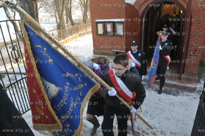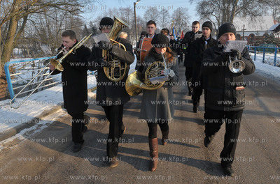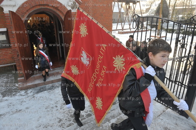 Uroczystosci nadania szkole podstawowej w Niestepowie imienia Wiezniow Obozu Stutthof. Przemarsz z kosciola do szkoly. 27.01.2012 fot. Maciej Kosycarz / KFP
