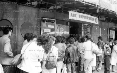 Tuz przed rozpoczeciem roku szkolnego, tradycyjna kolejka po zeszyty, bloki rysunkowe, olowki i artykuly papiernicze na targach szkolnych na ul. Szerokiej w Gdansku. 24.08.1988 1sierpien88_z.kosycarz_p7 Fot. Zbigniew Kosycarz / KFP ZAKAZ PUBLIKACJI ZDJECIA W INTERNECIE