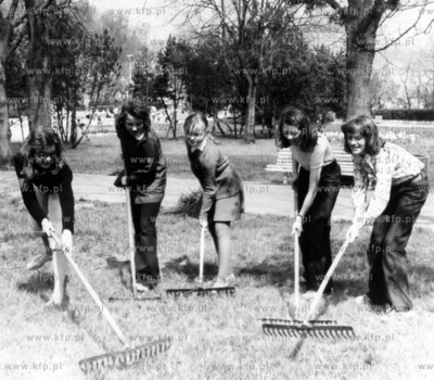 Uczennice z klasy VII a ze Szkoly Podstawowej nr 77 w czynie spoleczenym porzadkuja teren parku obok plazy w Jelitkowie. 05.1978 odb_10_04_28 Fot. Zbigniew Kosycarz / KFP ZAKAZ PUBLIKACJI ZDJECIA W INTERNECIE