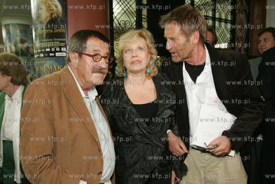 Gdansk, kino NEPTUN, prapremiera filmu Roberta Glinskiego pt. Wrozby Kumaka, ktory powstal na podstawie powiesci Guntera Grassa pod tym samym tytulem. Na zdjeciu od lewej Gunter Grass, Krzystyna Janda i Matthias Habich. 11.09.2005 fot. Wojtek Jakubowski /KFP