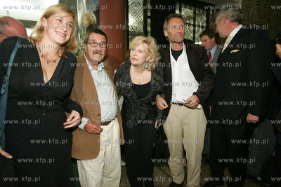 Gdansk, kino NEPTUN, prapremiera filmu Roberta Glinskiego pt. Wrozby Kumaka, ktory powstal na podstawie powiesci Guntera Grassa pod tym samym tytulem. Na zdjeciu od lewej Gunter Grass z corka, Krystyna Janda, Matthias Habich i minister kultury Waldemar Dabrowski. 11.09.2005 fot. Wojtek Jakubowski /KFP