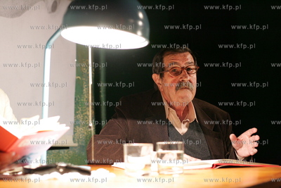 Do Gdanska przyjechal pisarz Gunter Grass, w pubie Latajacy Holender odbyl sie WIECZOR Z GRASSEM, podczas ktorego czytano wiersze pisarza, poety z ostatniej ksiazki. Polskie tlumaczenia czytal pisarz Pawel Huelle. 14.06.2005 fot. Wojtek Jakubowski /KFP