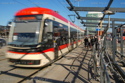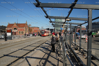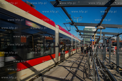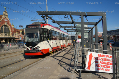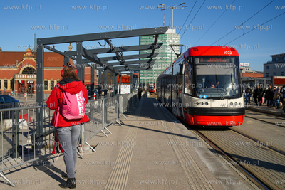 Od dwóch miesięcy pasażerowie komunikacji miejskiej w Gdańsku korzystają z przebudowanych i wydłużonych do ponad 110 metrów, podwójnych przystanków tramwajowych Dworzec Główny. O pełnym komforcie mówić jeszcze nie mogą. Na peronach między wejściami do tunelu pod Podwalem Grodzkim a nowo wybudowanym przejściem podziemnym wciąż toczą się prace modernizacyjne. Według pierwotnego harmonogramu inwestycja miała zakończyć się kilka tygodni temu. Jak wyjaśnia Dyrekcja Rozbudowy Miasta Gdańska, za opóźnienie odpowiada wykonawca nowych wiat przystankowych, który nie dotrzymał terminu wykonania zamówienia. Monterzy obszernych stalowych konstrukcji (po cztery na każdym przystanku) przystąpili do pracy dopiero przed dwoma tygodniami. Powoli zbliżają się do finiszu. W ostatnich dniach wykonawcom udało się uruchomić cztery nowoczesne tablice informacji pasażerskiej. Stojące na ziemi tzw. totemy to nowość w Gdańsku. Tablice wykonane w technologii LED wyświetlają rzeczywisty czas odjazdu tramwajów, prezentują podświetlane schematy komunikacji tramwajowej, wyposażone są także w system zapowiedzi głosowej dla osób z dysfunkcją wzroku. 7.03.2025 / fot. Paweł Marcinko / KFP