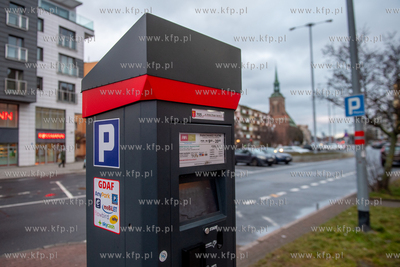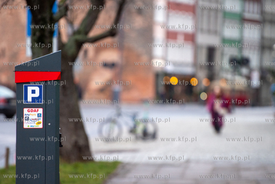 Parkometr w Śródmiejskiej Strefie Płatnego Parkowania w Gdańsku. Nz. ul. Grobla 29.01.2029 fot. Paweł Marcinko / KFP