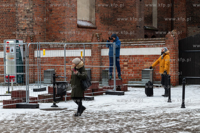 Ośnieżony Plac Świętopełka w Gdańsku. Na drugim planie kościół św. Mikołaja. 3.01.2025 fot. Daniel Słoboda / KFP