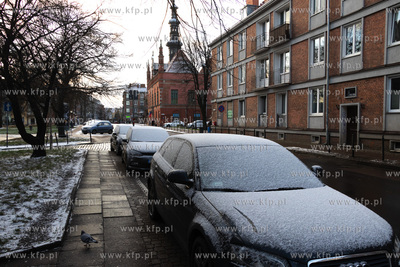 Ośniezone samochody zaparkowane na ulicy Korzennej w Gdańsku. 3.01.2025 fot. Daniel Słoboda / KFP