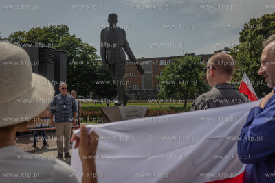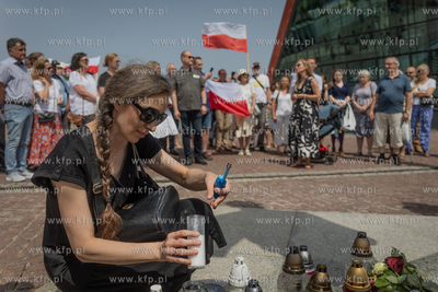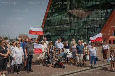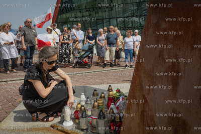 Protest pod Muzeum II Wojny Światowej przeciwko usunięciu św. Maksymiliana Kolbe, rodziny Ulmów i rotmistrza Witolda Pileckiego.