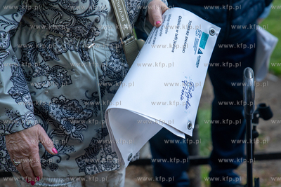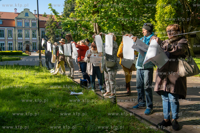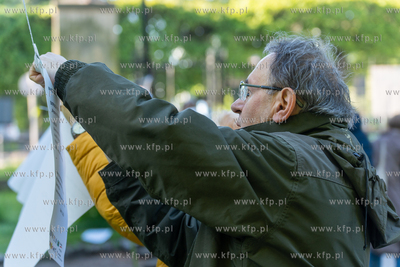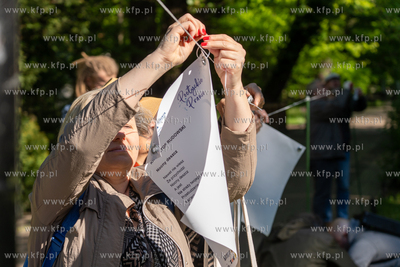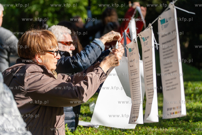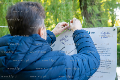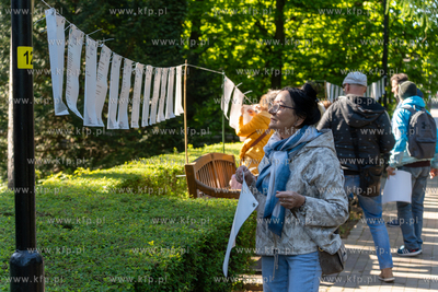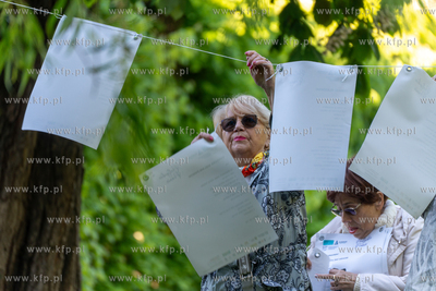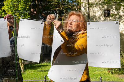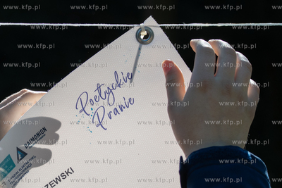 Oliwskie Dni Poezji. Rozwieszanie poetyckiego prania w alejkach Parku Oliwskiego. 24.05.2025 fot. Paweł Marcinko / KFP