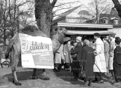 Wielblad z reklama Delikatesow w Gdansku nieopodal Opery i Filharmonii Bałtyckiej .(zk_arch_pryw_p4) 1964 Fot. Zbigniew Kosycarz / KFP ZAKAZ PUBLIKACJI ZDJECIA W INTERNECIE