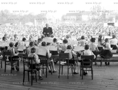 Wystep dzieciecej orkiestry w muszli koncertowej na Placu Zebran Ludowych w Gdansku podczas festynu. 0001423z 1961 Fot. Zbigniew Kosycarz / KFP ZAKAZ PUBLIKACJI ZDJECIA W INTERNECIE