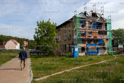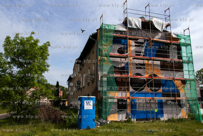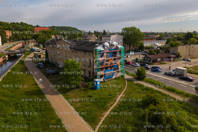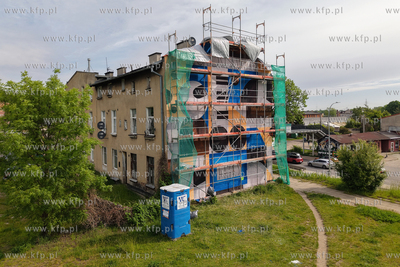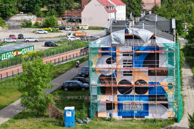 Na południowej elewacji budynku mieszkalnego przy Trakcie św. Wojciecha 36 powstaje nowy mural. Choć na razie widać dopiero pierwsze szkice, już wkrótce ukaże się w pełnej okazałości jego główny motyw. 28.05.2025 / fot. Daniel Słoboda / KFP