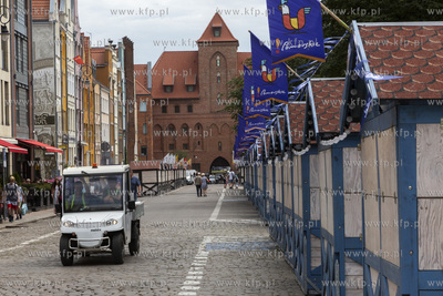 Ostatnie przygotowania do Jarmarku św. Dominika w Gdańsku. Wjazd na Targ Węglowy.