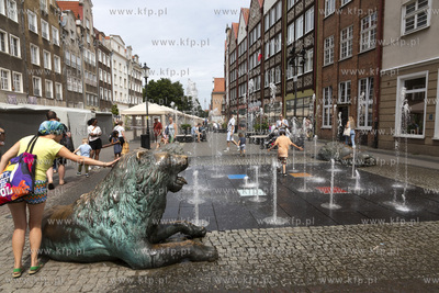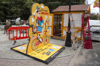 Ostatnie przygotowania do Jarmarku św. Dominika w Gdańsku. Fontanna 4 Kwartałów na Grobli I.