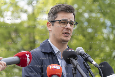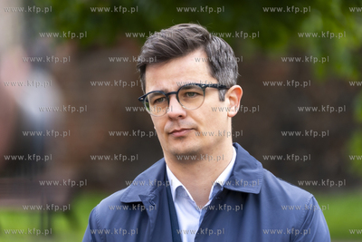 Placu im. Dariusza Kobzdeja. Briefing prasowy zapowiadający wznowienie prac nad utworzeniem Parku Kulturowego na terenie Głównego Miasta w Gdańsku.Nz. Piotr Dzik, radny 13.05.2025 fot. Paweł Marcinko / KFP
