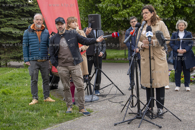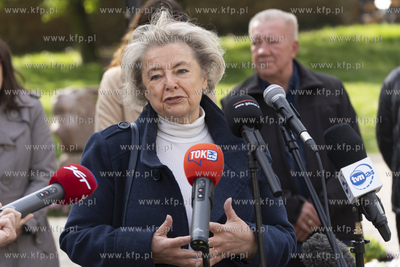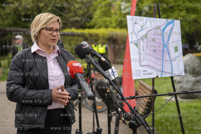 Placu im. Dariusza Kobzdeja. Briefing prasowy zapowiadający wznowienie prac nad utworzeniem Parku Kulturowego na terenie Głównego Miasta w Gdańsku.Nz. Jolanta Banach, radna 13.05.2025 fot. Paweł Marcinko / KFP