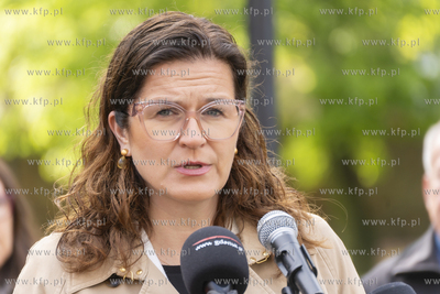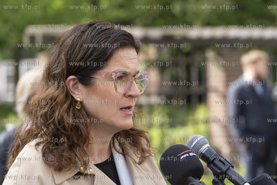 Placu im. Dariusza Kobzdeja. Briefing prasowy zapowiadający wznowienie prac nad utworzeniem Parku Kulturowego na terenie Głównego Miasta w Gdańsku.Nz. Aleksandra Dulkiewicz, prezydent Gdańska. 13.05.2025 fot. Paweł Marcinko / KFP