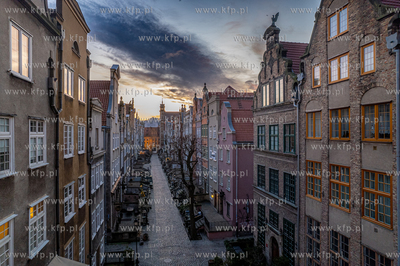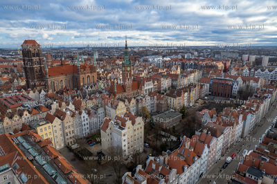 Panorama Gdańska. Widok na kamieniczki od strony ul. Ogarnej. W tle Ratusz Gwnomiejski oraz Bazylika Mariacka. 01.02.2025 fot. Paweł Marcinko / KFP