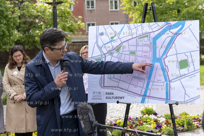 Placu im. Dariusza Kobzdeja. Briefing prasowy zapowiadający wznowienie prac nad utworzeniem Parku Kulturowego na terenie Głównego Miasta w Gdańsku.13.05.2025 fot. Paweł Marcinko / KFP