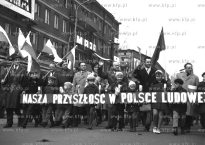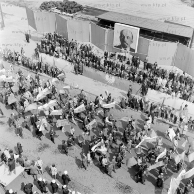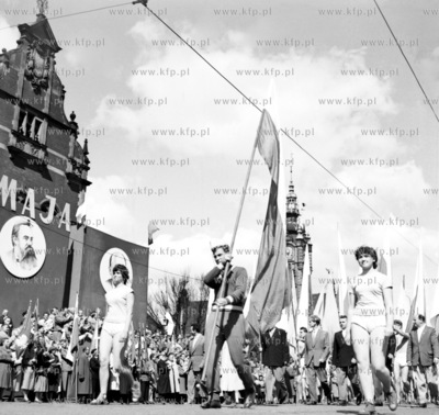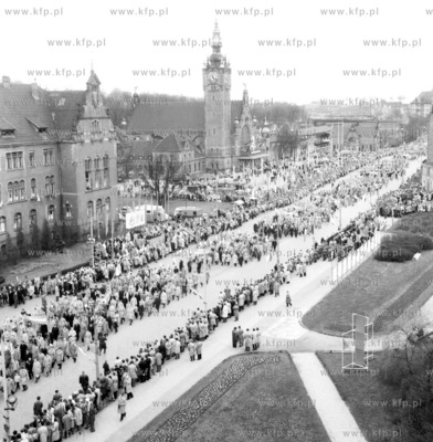 Pochod 1 majowy na ul. Podwale Grodzkie przed dworcem PKP w Gdansku. 0001907z 1963 Fot. Zbigniew Kosycarz / KFP ZAKAZ PUBLIKACJI ZDJECIA W INTERNECIE ZAKAZ PUBLIKACJI ZDJECIA W INTERNECIE