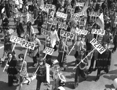 Zuchy w pochodzie 1 majowym w Gdansku. 1maj1974_z.kosycarz_p8 1.05.1974 Fot. Zbigniew Kosycarz / KFP ZAKAZ PUBLIKACJI ZDJECIA W INTERNECIE