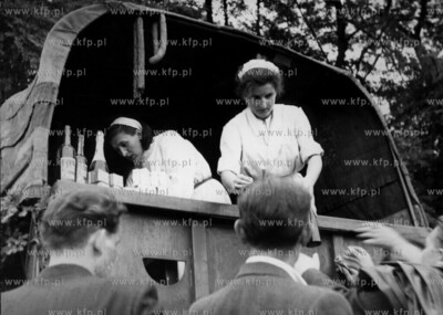 Z okazji obchodów 1 maja "rzucano" towary zwykle niedostepne w sklepach ; z wozów ciezarowych sprzedawano szampany, kielbase, papierosy i inne "luksusowe" dobra. Lata 60. 1960 Fot. Zbigniew Kosycarz /KFP ZAKAZ PUBLIKACJI ZDJECIA W INTERNECIE