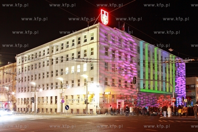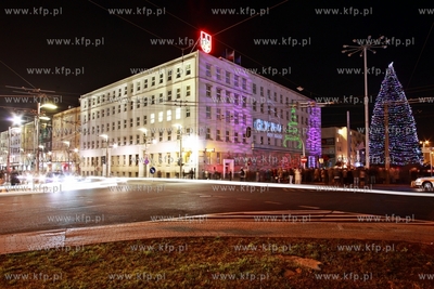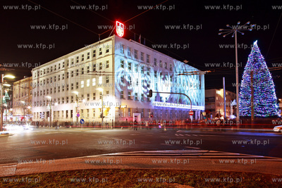 Gdynia. Mikolajki. Podswietlony Urzad Miasta i zapalone...