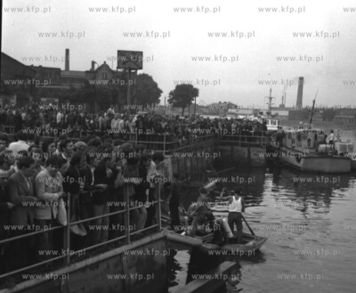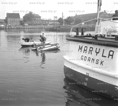 Akcja ratownicza po zatonieciu promu linowego na Motlawie. 1.08.75. Fot. Zbigniew Kosycarz / KFP ZAKAZ PUBLIKACJI ZDJECIA W INTERNECIE