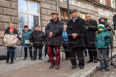 Gdańsk, Biskupia Górka. Uroczystość odsłonięcia pomnika gdańskiego bówki Brunona Zwary przy ul. Biskupiej 33. Odsłonięcia pomnika dokonał kuzyn Brunona, Romuald Zwarra. 21.12.2024 fot. Paweł Marcinko / KFP