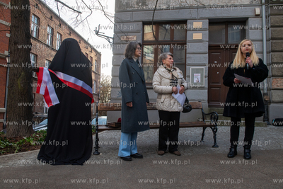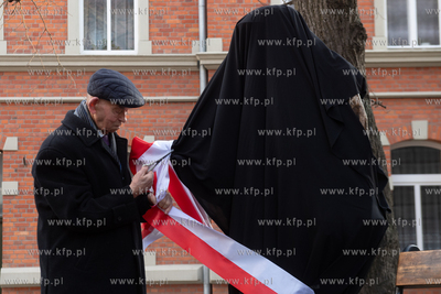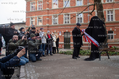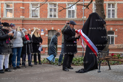 Gdańsk, Biskupia Górka. Uroczystość odsłonięcia pomnika gdańskiego bówki Brunona Zwary przy ul. Biskupiej 33. 21.12.2024 fot. Paweł Marcinko / KFP