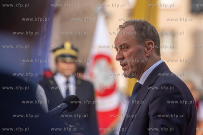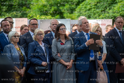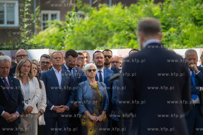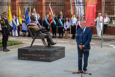 W Gdańsku stanął pomnik Lecha Bądkowskiego, zmarłego 40 lat temu ojca pomorskiej samorządności, sygnatariusza porozumień sierpniowych. Hołd złożony kaszubskiemu i pomorskiemu działaczowi społecznemu, pisarzowi i publicyście ma przypominać nam, o tym, że odwaga cywilna i niezłomność ducha, są fundamentem wolnego społeczeństwa. – Wszyscy pamiętamy Lecha Bądkowskiego jako człowieka z krwi i kości, niezwykle pragmatycznego, bardzo pomorskiego, bardzo kaszubskiego (…) Bardzo dziękuję wszystkim, którzy zainicjowali budowę pomnika, że wybraliście ten dzień – 31 sierpnia. Nie byłoby Solidarności, nie byłoby niepodległej Polski, nie byłoby tego pokojowego i bardzo odpowiedzialnego procesu budowy nowej Polski, gdyby nie Lech Bądkowski. Powiem szczerze, nikt sobie nie zdaje sprawy, ile dzisiejsza Polska zawdzięcza temu chłodnemu umysłowi, a równocześnie gorącemu sercu. Nie było lepszego mistrza patriotyzmu, myślę że, dla nas wszystkich tu zgromadzonych, niż Lech Bądkowski. Nigdy Ci się już tak naprawdę nie odwdzięczymy – niech ten pomnik i nasza obecność dzisiaj będą śladem tej wdzięczności. Zrobiłeś wielką rzecz – powiedział podczas uroczystości odsłonięcia monumentu premier Donald Tusk. Wzruszenia nie ukrywała córka Lecha Bądkowskiego Sławina Kosmulska, której w tej niezwykłej chwili na skwerze obok kościoła św. Jana, u zbiegu ulic Minogi i Świętojańskiej, towarzyszyli mąż i wnuczka. – Mało jest chyba ludzi na świecie, którzy takie chwile przeżywają. Jestem niezwykle szczęśliwa i dumna, ale chcę powiedzieć, że mój ojciec był bardzo skromnym człowiekiem. Pewnie siedzi i się dziwi tam gdzieś u góry, jak to się stało, że w Gdańsku stanął jego pomnik. Ojciec po prostu uważał, że najważniejsza są praca, obowiązek, uczciwość i stawanie we właściwym miejscu. Serdecznie dziękuję prezydent Aleksandrze Dulkiewicz, która pierwsza podjęła decyzję o zbudowaniu pomnika – myśmy występowali o skromną ławeczkę. Dziękuję Zrzeszeniu Kaszubsko-Pomorskiemu, które wzięło na siebie trudną rolę inwestora, dziękuję też wszystkim, którzy wsparli nas finansowo i moralnie, zwłaszcza marszałkowi województwa pomorskiego Mieczysławowi Strukowi i marszałkowi województwa kujawsko-pomorskiego Piotrowi Całbeckiemu – powiedział córka Lecha Bądkowskiego. 31.08.2024 / fot. Konrad Kosycarz / KFP