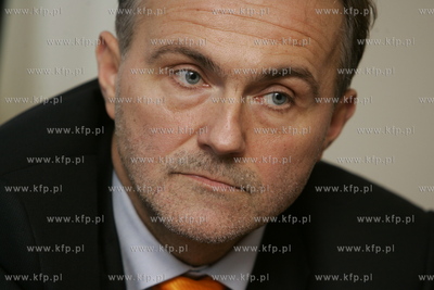 W Gdyni Kosakowie na terenie lotniska wojskowego Babie Doly powstanielotnisko cywilne. W zwiazku z tym zwolano w tym miejscu konferencje prasowa . Nz prezydent Gdyni Wojciech Szczurek. 28.02.2008 fot. Wojtek Jakubowski /KFP