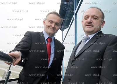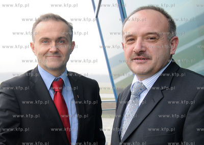 Gdynia. Baza Lotnicza Marynarki Wojennej w Babich Dolach. Przekazanie nowowybudowanej wiezy kontroli lotow, w ktorej za niespelna miesac sluzby ruchu lotniczego Mw rozpoczna prace. Bedzie to jeden z najnowoczesniejszych tego typu obiektow w Polsce. Inwestycje wykonala firma Elketrobudowa Katowice. Nz. (od lewej) Wojciech Szczurek - prezydent Gdyni i Janusz Stateczny - prezes Zarzadu Spolki Port Lotniczy Gdynia - Kosakowo 10.12.2009 Fot. Andrzej J. Gojke / KFP