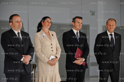 Gdansk. Uroczystosc zakonczenia budowy Centrum Medycyny Inwazyjnej Gdanskiego Uniwersytetu Medycznego z udzialem premiera Donalda Tuska, minister zdrowia Ewy Kopacz oraz rektora Gdanskiego Uniwersytetu Medycznego prof. dr hab. Janusza Morysia