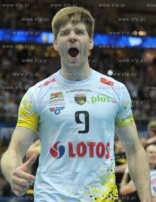 Ergo Arena Gdansk/Sopot. Final Pucharu Polski w Pilce Siatkowej Mezczyzn 2015. Mecz finalowy Lotos Trefl Gdansk vs. Asseco Resovia Rzeszow 3:1 (25:22, 21:25, 25:21, 25:23). Nz Piotr Gacek. 19.04.2015 fot Jerzy Bartkowski / KFP