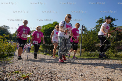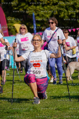 Tereny zielone wokół Hevelianum w Gdańsku. Siódma edycja największego w Europie biegu i marszu Race For The Cure by wesprzeć chorych na raka piersi. Nz. europosłanka Magalena Adamowicz. 22.09.2024 fot. Paweł Marcinko / KFP