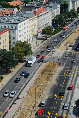 Gdansk Wrzeszcz. Utrudnienia w ruchu drogowym zwiazane z remontem torowisk w ciagu al. Grunwaldzkiej na odcinku od ul. Klonowej do ul. Miszewskiego.